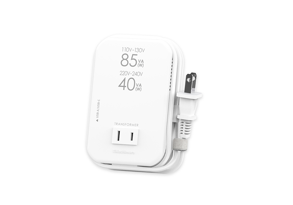 海外用薄型2口変圧器USB-A+C PD20W 110-130V/85VA 220-240V/40VA