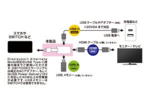 ※対応スマートフォンはUSB-Type-Cポート搭載でDisplay Port Alternate Mode(ディスプレイポート オルタネートモード)対応機種に限ります。