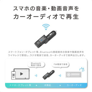 ●Bluetooth対応のスマートフォン/iPhoneの音楽やワンセグ音声をワイヤレスで受信、カーステレオから聴くことができます。