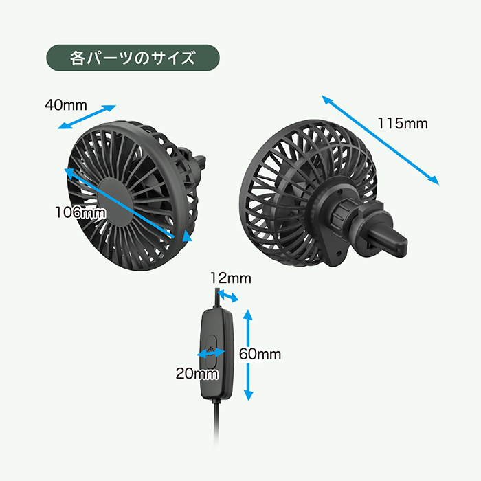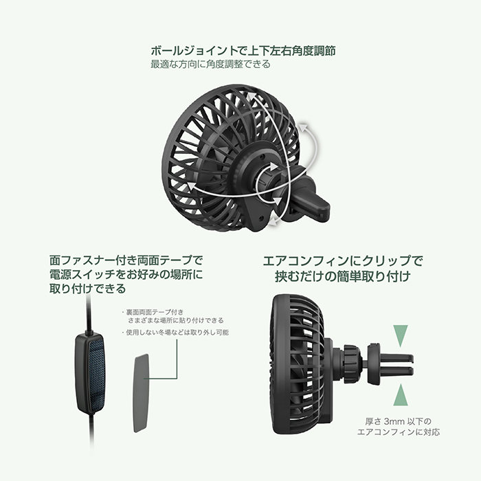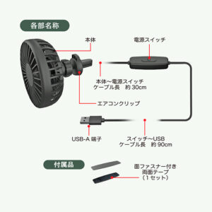 | 消費電力 | 0.95W(風量弱時)~3.15W(風量強時) |