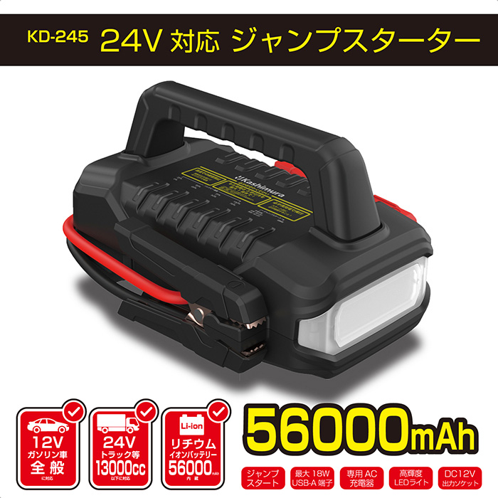備えて安心な56000mAhバッテリー内蔵のジャンプスターター。