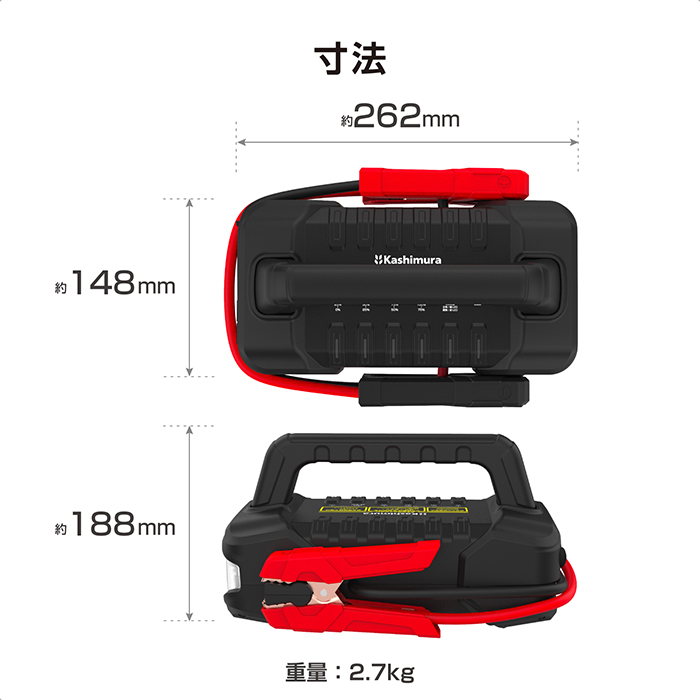 | ジャンプスタートケーブル長 | プラス端子クリップ側:約35cm マイナス端子クリップ側:約35cm |