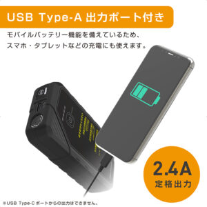モバイルバッテリーとして使用可能。スマートフォンやデジタル機器の充電が可能。
