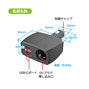 ●1つのDCソケット、2つのUSB Type-Cポートを備えたダイレクトタイプの増設ソケット。