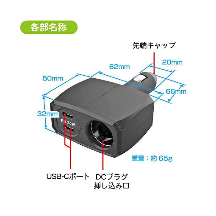 | 本体サイズ/重量 | W62×H32×D116mm / 65g |