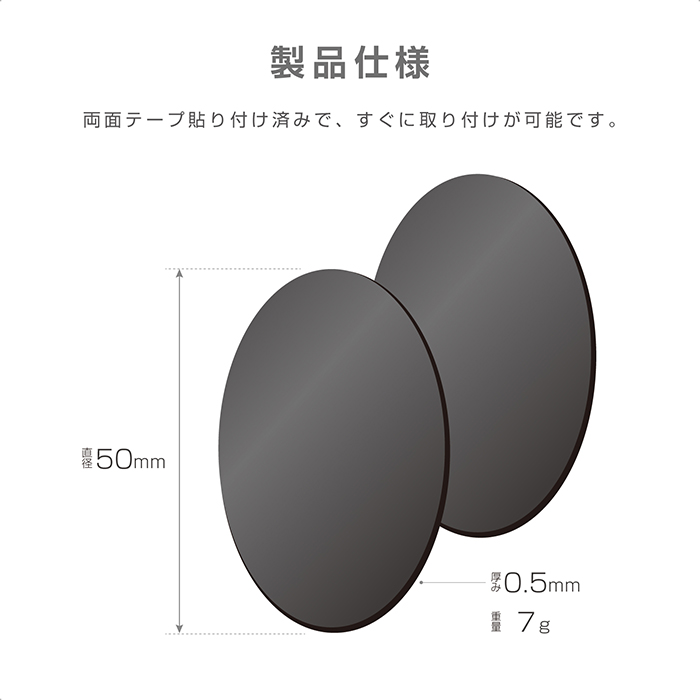 マグネット着脱式スマホホルダー専用の金属プレート2枚入り。