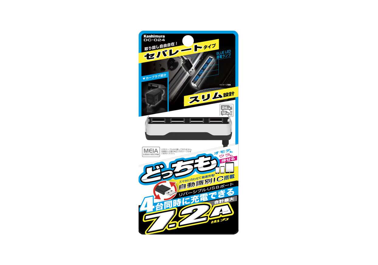 DC-7.2A-リバーシブルUSB 4ポート 自動判定 セパレート スリム