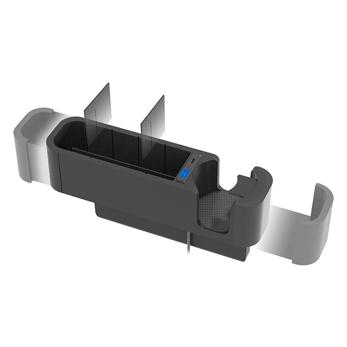 前/後方スライドを引出して最大3箇所にホールド可能。