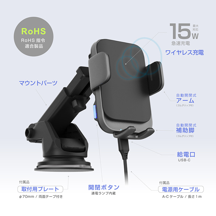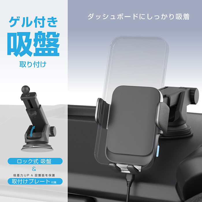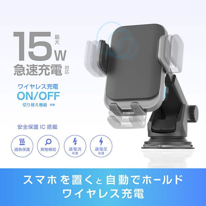 自動開閉式 ワイヤレス充電ホルダー 自動誘導 吸盤取り付け
