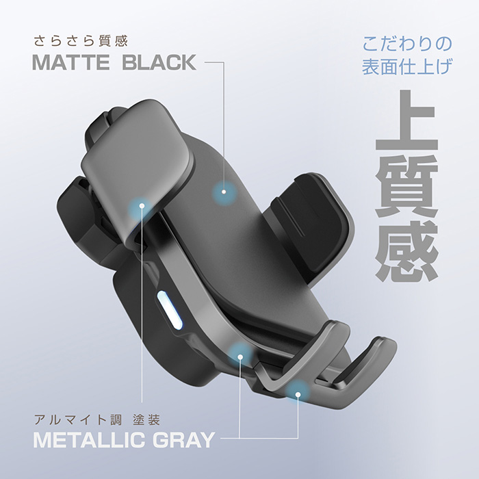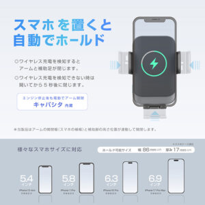 スマートフォンを置くだけで自動でホールド&充電できるワイヤレス充電ホルダー。
