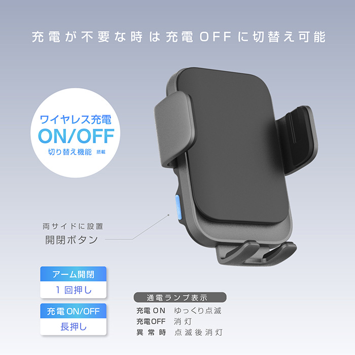 ワイヤレス充電ON/OFF機能搭載