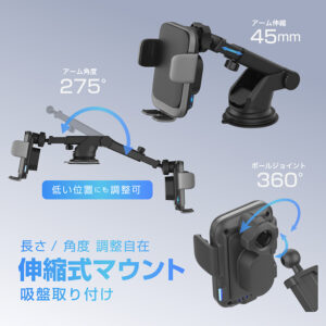 ダッシュボード取り付けに最適な伸縮式吸盤マウント