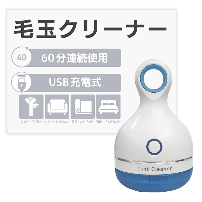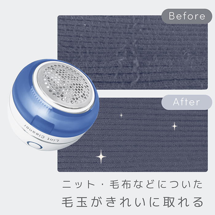 リントクリーナー 毛玉取り器 USB充電式 BLUE