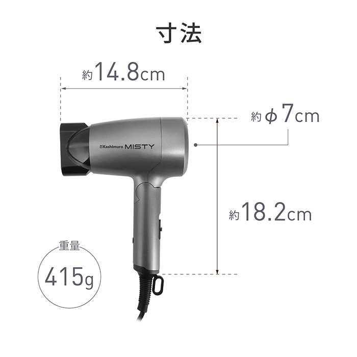 本体サイズ/重量 | W148×H182×D70mm / 415g(ノズル付) |