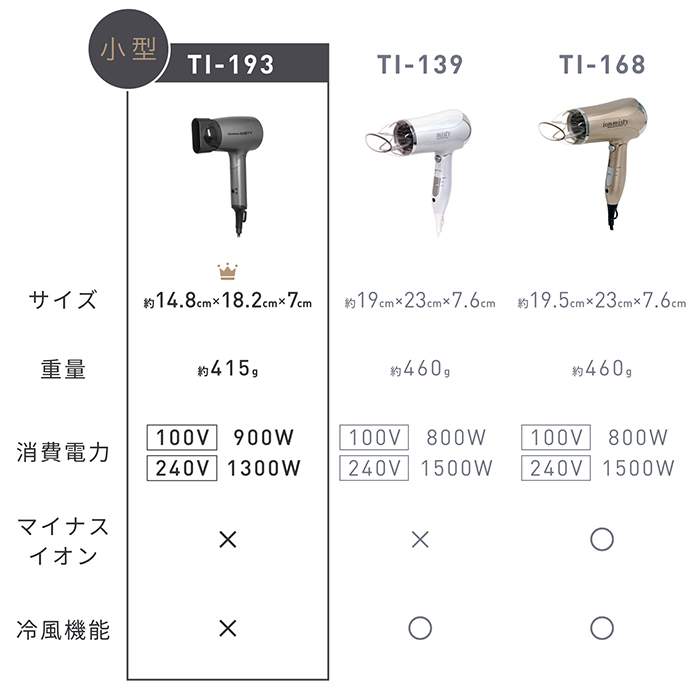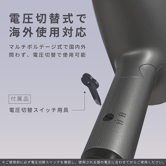 日本でも海外でも使える電圧切替式のトラベルドライヤー。