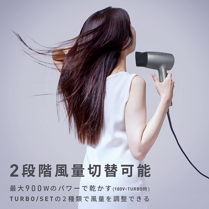 電源スイッチで、TURBO/SETの2種類の風量を調整できます。