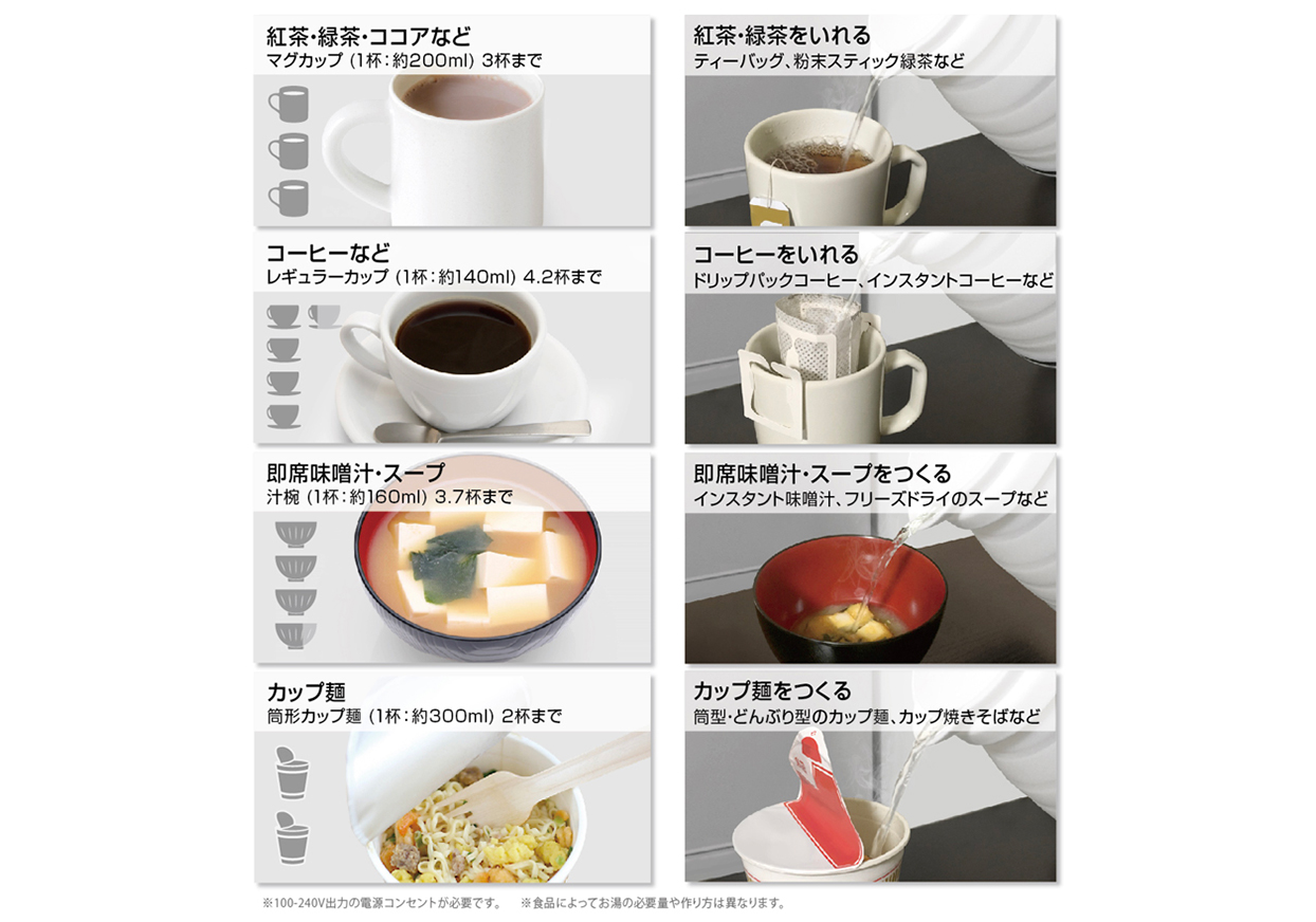 ※沸騰時間は入力電圧、水量、容量、水温、気温、気圧等により異なります。