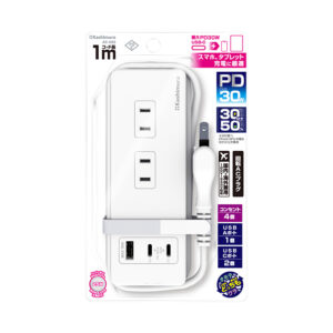 4口のACコンセントとUSB PD/PPS対応USB Type-C 2ポート+USB Type-A 1ポート搭載の電源タップ。
