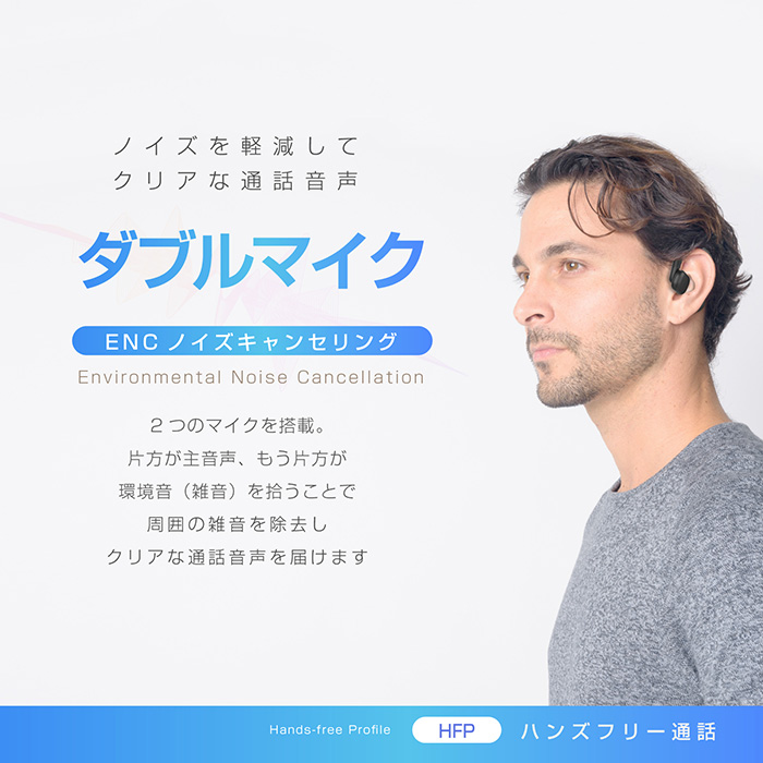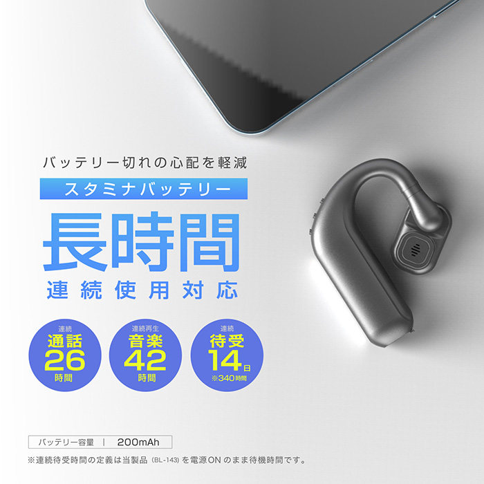 ワイヤレスイヤホン オープンイヤー スタミナバッテリー&ダブルマイク