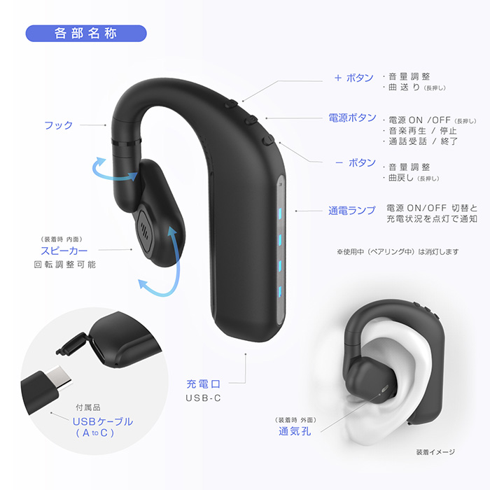 左右どちらの耳でもご使用いただけます。