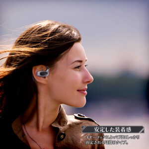 イヤーフックによって耳にしっかり固定される耳掛けタイプ。