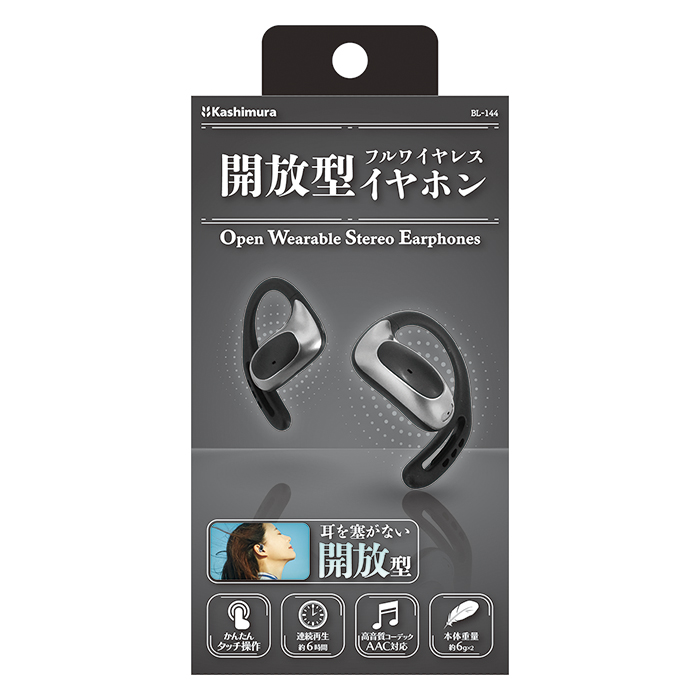 完全ワイヤレスステレオイヤホン 耳掛け型 オープンイヤー BK