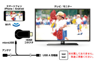 スマートフォンの映像を大画面に映すことができるワイヤレスレシーバー。
