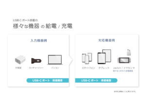 ●USB Type-Cポート搭載の充電器やパソコンからUSB Type-Cポート搭載のスマートフォン/タブレットを充電可能。