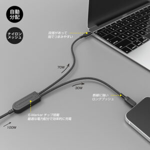 ※2台の高電圧対応機器(20V/60W以上)を同時に使用する場合、先に接続した機器に70W、後から接続した機器に30Wを割り当てます。