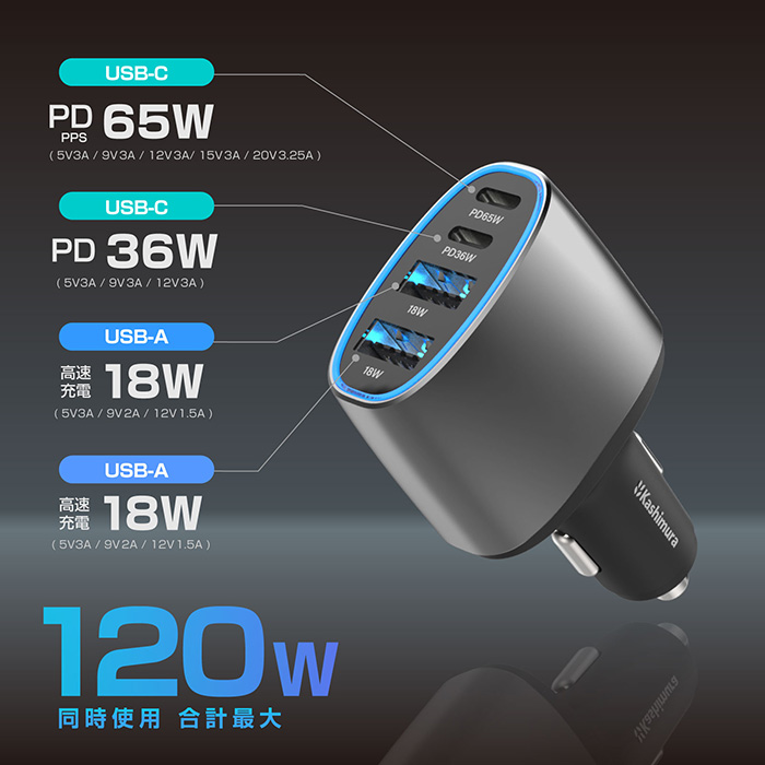 USB PD(Power Delivery)規格対応。4ポート合計最大出力120W。