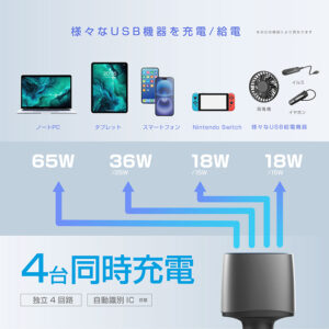 ノートPC / スマホ / タブレット等、4台同時に充電。