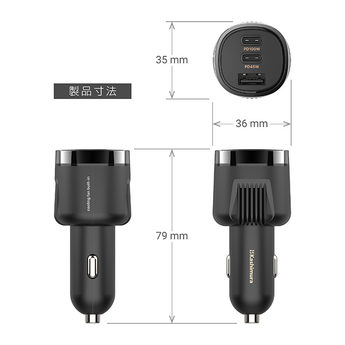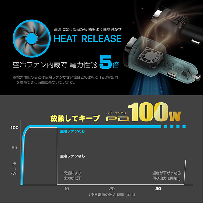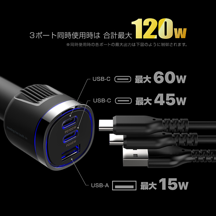 DC-120W USB 3ポート PD100W 自動判定 空冷ファン