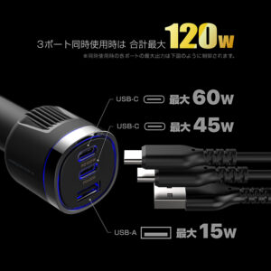 | 出力 同時使用時 | USB Type-C最大60W, USB Type-C最大45W, USB Type-A最大15W / 合計最大120W |