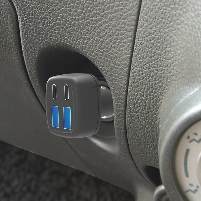 ●車のDCソケットを3ポートのUSB電源に変換。スマートフォン/タブレット/ノートPC等を充電・給電。