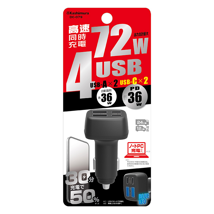●出力合計最大72Wで高速充電。(USB Type-Cポート×2同時使用時またはUSB Type-Aポート×2同時使用時)