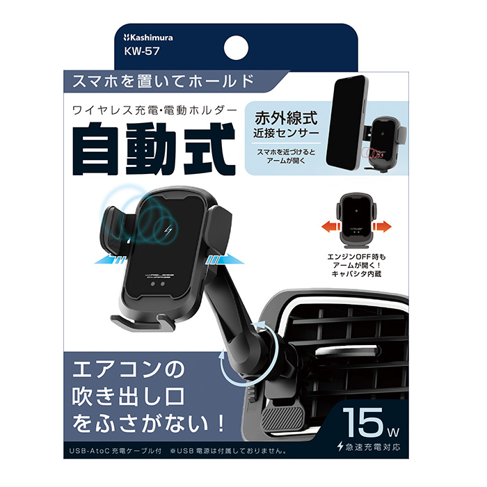自動開閉式 ワイヤレス充電ホルダー エアコン取り付け