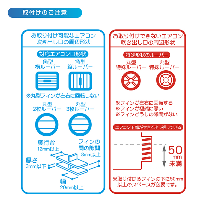 クリップをエアコンフィンに差し込み、ダイヤルで固定して設置します。