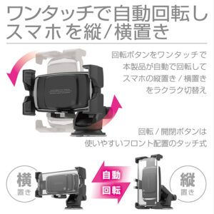 ワンタッチで本製品が回転、スマートフォンの横置き/縦置きをラクラク切替え。