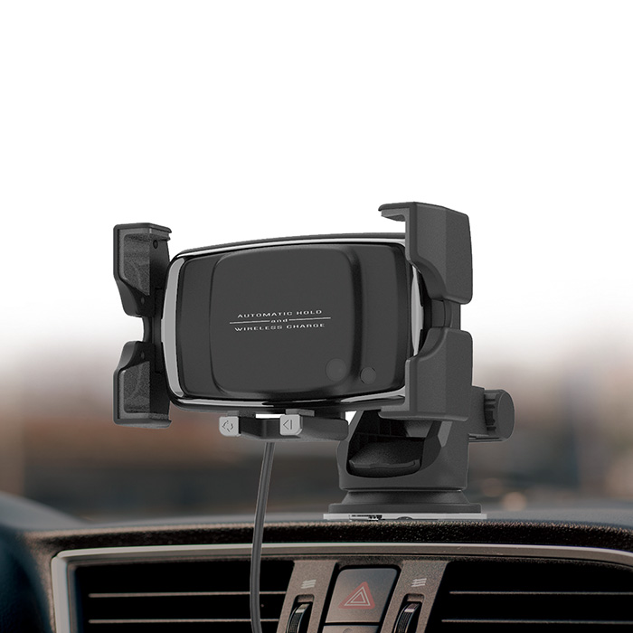 自動開閉式ワイヤレス充電ホルダー 自動回転/4角ホールド 吸盤取り付け