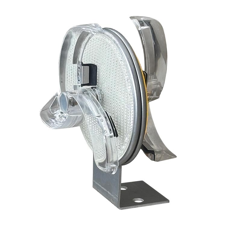 アンカーボルト2本で設置します (反射体:メタクリル樹脂 プロペラ:ポリカーボネイト樹脂 反射体取付枠:アルミ合金板) 防塵式(プロペラ付き)は、高い防塵機能により長期間輝度を維持