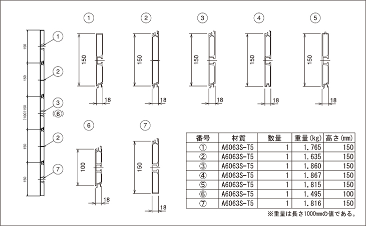 7種類の押出形材を組み合わせることにより、様々なサイズに対応します