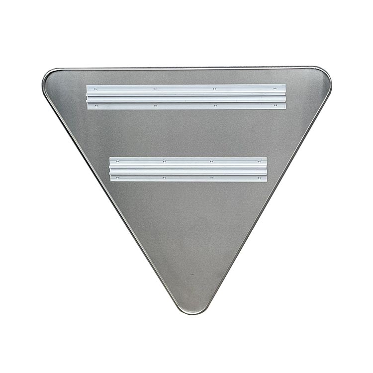 標示板端部をカール加工し、歩行者が接触しても安全な仕様です Uバンド 等の金具で支柱に取り付けます アルミ合金板(A5052)t1.0に平リブをスポット溶接 注)表面に標示はありません