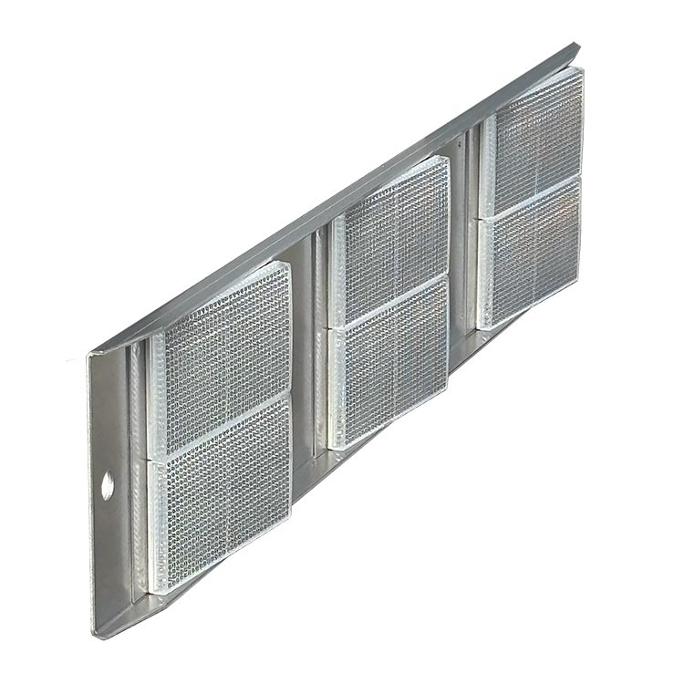 SD-4A-A(橙) SD-6E-A(橙) 片面式/両面式 斜光デリは斜め方向に再帰反射させるデリネーターです 壁面からの突起を最小限に抑えることで景観や安全面にも配慮した連続反射体です 反射体色は白、橙の2色、列数は用途に応じて製作できます 反射体の向きを交互に設置した両面式も可能です
